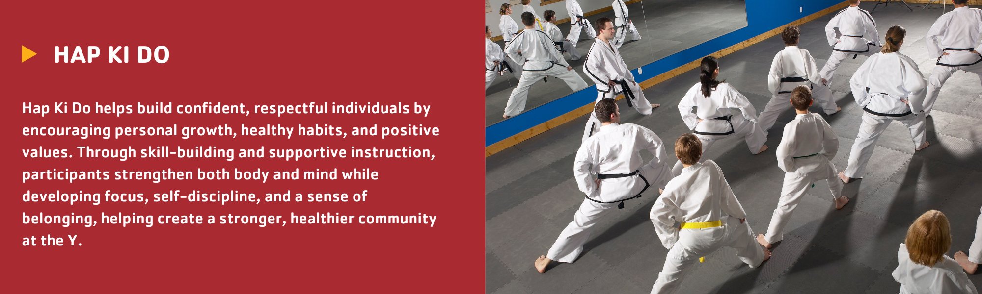 Hap Ki Do also promotes respect, personal growth, and a sense of community, making it a great way to stay active, build character, and connect with others at the Y.